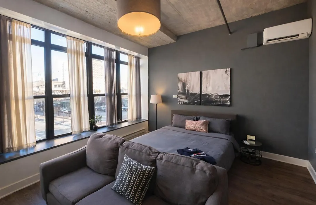 Staying at the apartment, guests have access to an adjoining terrace, a seating area, and a living room equipped with air conditioning, a washing machine, and soundproof walls. At Mccormick Place Beautiful Studio Suite With Optional Parking And Gym Access Sleeps 4 Near Soldier Field And Downtown Chicago, a separate toilet and a shower are provided to improve your comfort. Furthermore, hairdryers, free toiletries, and bath sheets is available.
